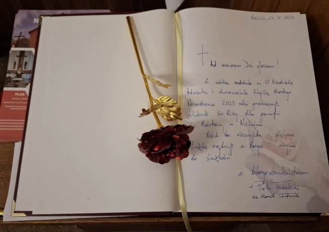 Wpis do księgi pamiątkowej bp. Piotra Turzyńskiego.   Wpis do księgi pamiątkowej bp. Piotra Turzyńskiego.