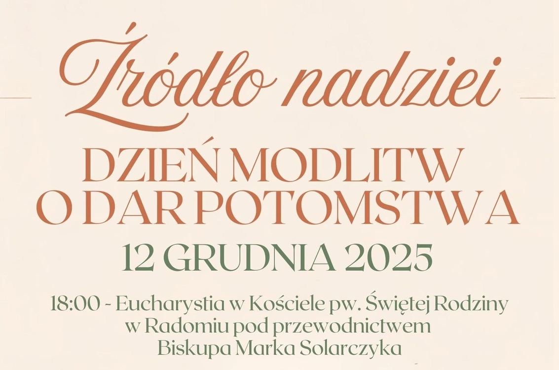 We wspomnienie Matki Bożej z Guadalupe 12 grudnia w naszej diecezji po raz pierwszy będziemy obchodzić Dzień Modlitw o Dar Potomstwa. - Jest to szczególny czas modlitwy w intencji małżeństw pragnących potomstwa, przeżywających trudności oraz szukających umocnienia w nadziei i zaufaniu Bogu - mówi ks. Krzysztof Bochniak, dyrektor Wydziału Duszpasterstwa Rodzin Kurii Diecezji Radomskiej.